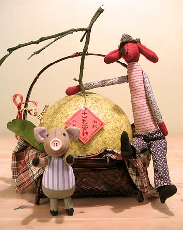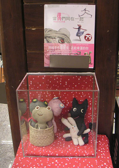 學弟洪明河日昨喜孜孜的抱了他和妻子阿桂聯手創作的布偶創作新書──「當偶們同在一起」來送我,之前他陸續請教過我一些關於出版設計的看法與流程。第一次出版的作品立即獲得眾多的掌聲與好評,我認為那是他們應該享有的榮耀,我知道明河投注了相當的心血與腦力,他是那種無論如何要把事情搞到接近完美境界的年輕人,有藝術家的堅持與執著的氣質。他的阿桂妻子也是,嫻熟巧妙的手藝,縫製出整屋子滿滿的布偶,巧妙而饒富創意,況且都堅持利用那些退了流行、淘汰不用的舊衣裳、碎花布、鈕扣配件等等。