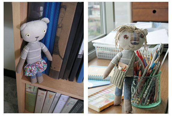 阿桂有著嫻熟的巧手與想法,她早期從事過兒童繪本的插畫創作,原本就具備了良好的造型基礎與配色技巧,她的布偶總流露著悠雅的特質,擬人化的動物趣味扮相,透露出濃濃的文學氣質,彷彿散步在歐洲鄉間、河道街巷的紳士淑女,閒適而優雅,和坊間的玩偶扮相就是有著不同的質感。這回夫妻聯手出擊,雖然明河自嘲是徒耗青春生命之作,但是我明顯感受到他們所投注的情份與誠意,是一出手就讓人為之驚艷的作品。