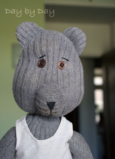 Papa Bear也是,某天剛好有塊剪剩的條紋碎布,有了想法,才為他做了件短褲,