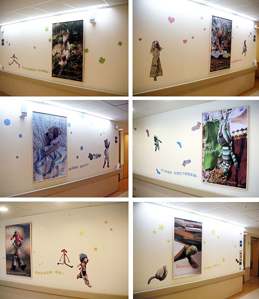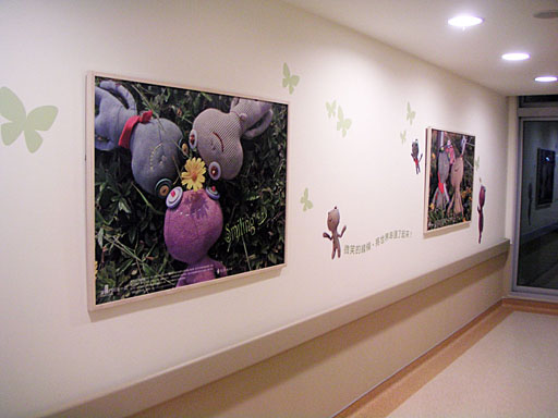 因為朋友承攬了新大樓藝文空間的經營,在知道醫院七樓兒童病房的走廊需要美化佈置後,向院方推薦