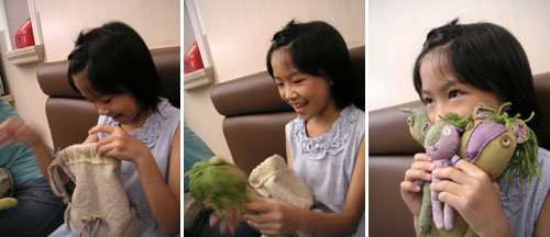 餐後拿出我的生日禮物送給芊,看到芊從袋中拿出布偶時的驚喜;一隻,又一隻