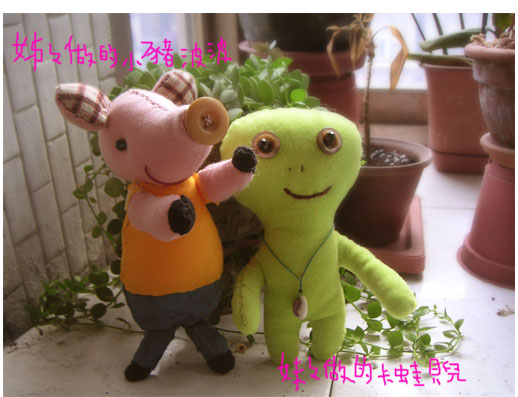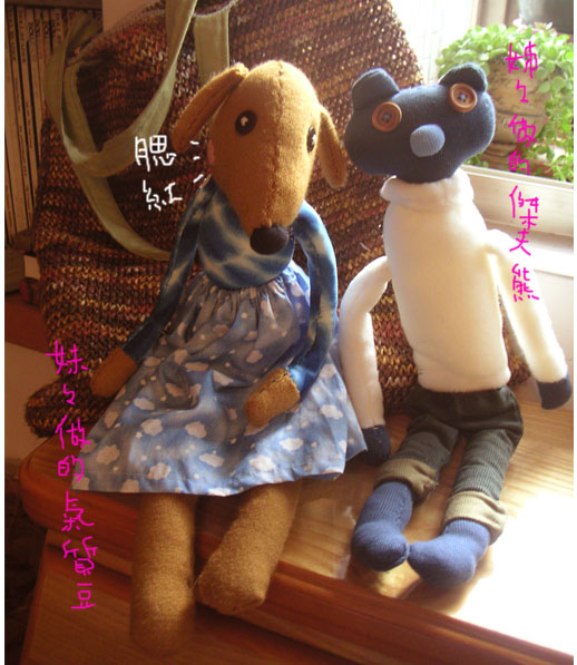 妹妹為「氣質豆」加了腮紅,姊姊不想幫「傑夫熊」縫嘴巴,加上一點自己的想法,就變得有個人特色了。