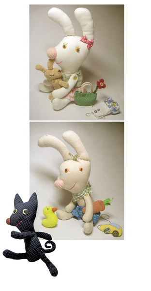 這四隻布偶娃娃都是小朋友自己挑選布花、搭配顏色,一針一線縫出來的成果,真的很不錯!很棒!