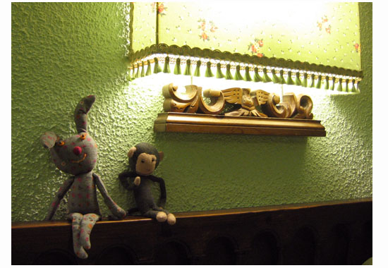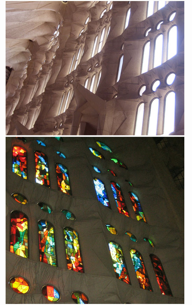 裡面有建築大師高第奇妙的設計,左下角垂掛著像吊燈的照片,相信嗎?是「聖家堂」的設計概念模型,從桌面的鏡子反射,就能看見建築物的正面雛形。高第與眾不同的觀點,令人佩服!佩服!