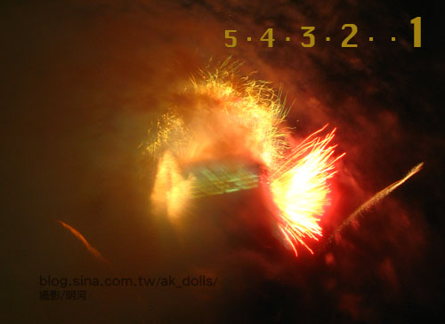 但是,就在煙火秀即將施放的前十分鐘,陪著朋友下樓去拿他的相機,回來時按門鈴沒人開,應該是大家都去頂樓看煙火了,打手機是滿線接不通,我們兩個大男人就被困在樓下著急呀~此時,忽然安靜下來,跟著眾人的眼光抬頭一看,101大樓的燈暗了下來……5…4…3.2.1…開始啦…趕忙拿起相機,擠進路上的人群裡,搶拍煙火啊!*﹏*