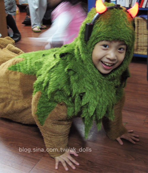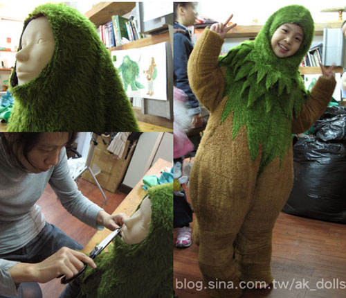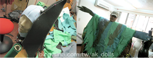小年獸的頭套,在頭部人台上做修飾裁剪。