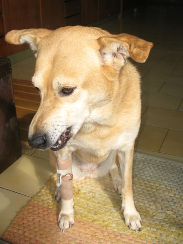 可憐的豆子,差一點被我愛死了,最近兩個月要外出工作,連假日都無休,沒有時間多陪陪狗狗們,也許是一種補償的心理吧!買了一大包牛皮骨寵愛他們,結果啃出事情啦!