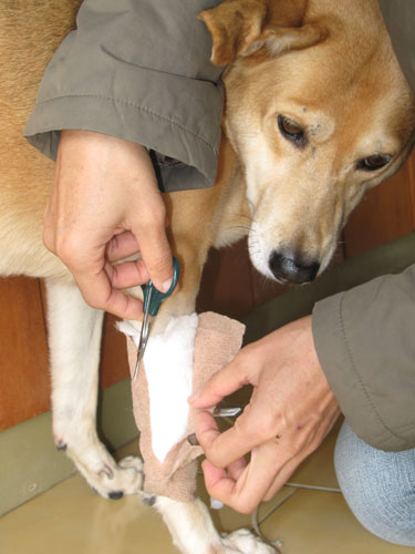 還好,星期日碧潭橋頭的新店動物醫院有門診到中午。按照醫生的指示,先去拍X光片再拿到獸醫院,可怕的是豆子在候診時,連拉了兩次大量的血水,所有的人與狗都嚇到紛紛走避,看到如此嚴重的狀況,我們都快哭出來了…