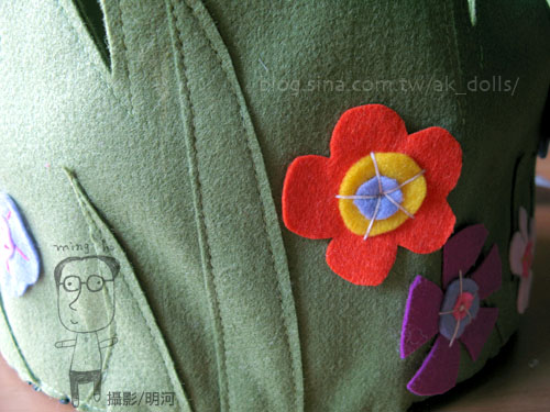 幾種顏色的不織布,剪成大大小小的葉形,拼湊出茂盛的樹葉。