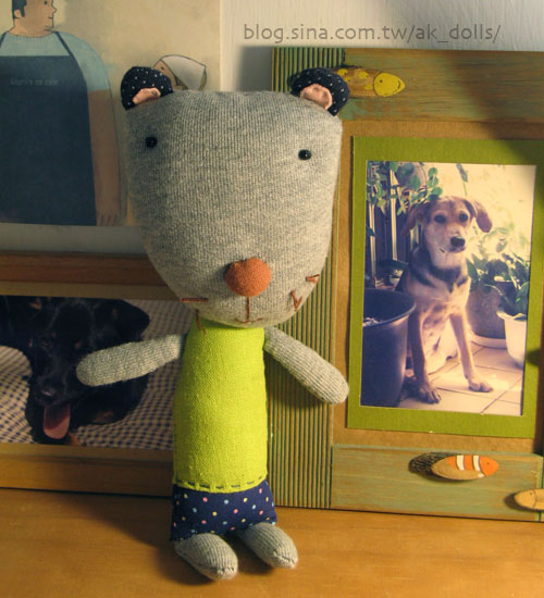 幾年前畫的設計圖,一直沒時間做成布偶,藉著這次機會,總算完成了小耳朵的鼠弟,不知道什麼時候才有空 ,把耳朵大大的鼠姊姊做成偶呢...