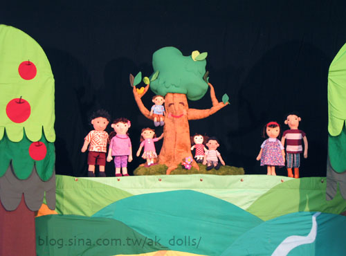 這次做了高約80公分的大樹偶與八個人偶,還有服裝、道具佈景,