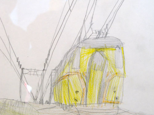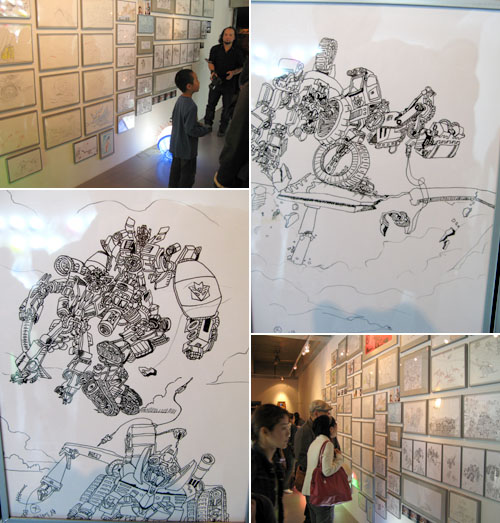 任何空白時刻,即會隨處尋找紙和筆,專注而安靜的投入於自己建構的繪畫世界中。